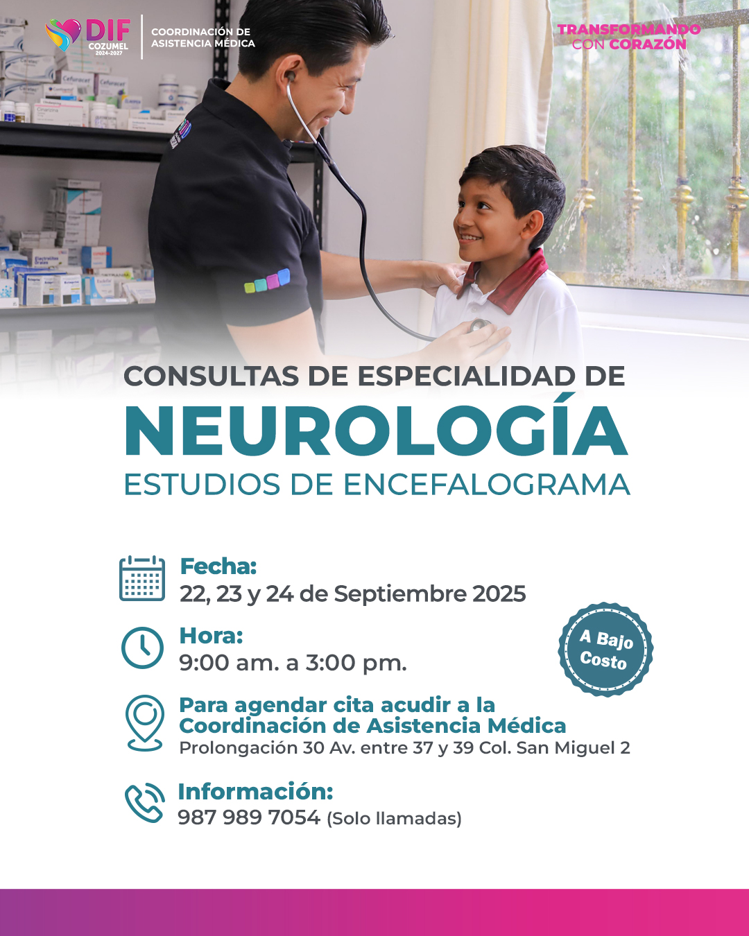 En Cozumel no se cuenta de manera permanente con especialistas en neurología dentro del sector público, y en el privado los precios resultan poco accesibles para la mayoría de las familias. Por ello, el Gobierno de José Luis Chacón, a través del Sistema DIF Cozumel, acerca nuevamente este servicio como una alternativa confiable y cercana para la comunidad.