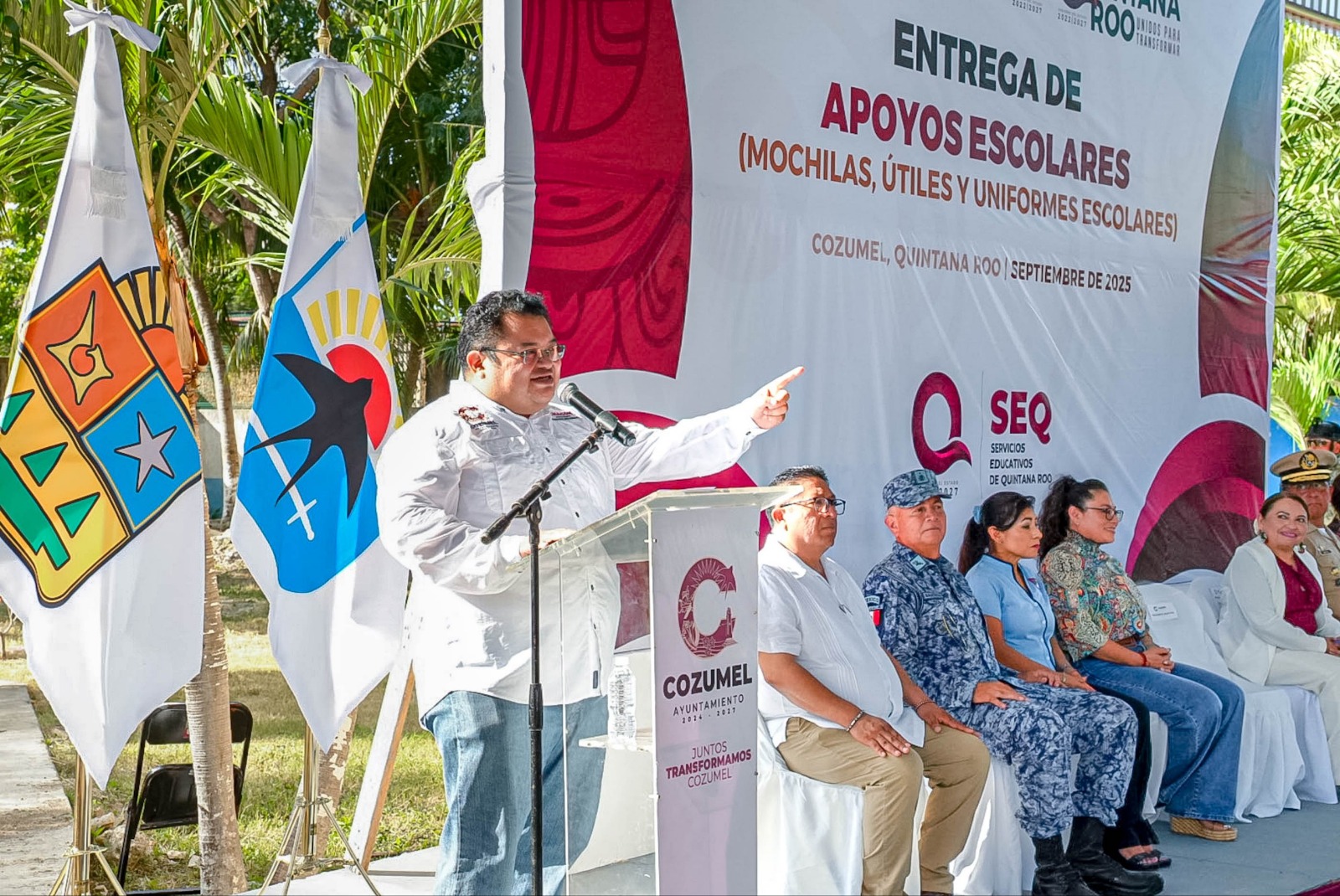 En su mensaje, el presidente municipal destacó los esfuerzos que se han realizado en materia educativa durante su primer año de gobierno, logrando que todas las secundarias y preparatorias de la isla cuenten ya con sistemas de aire acondicionado en beneficio del alumnado. Asimismo, anunció que en este segundo año de gestión se continuará con esta inversión, extendiéndola a todas las primarias de Cozumel, con el firme propósito de garantizar espacios dignos y una educación de calidad.