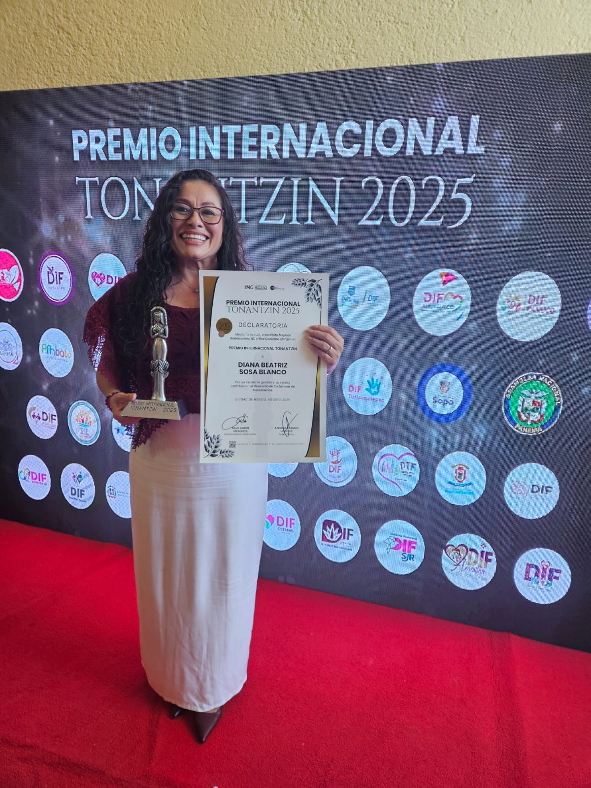 “Este premio es para todo el equipo del DIF Cozumel, porque cada proyecto y cada acción nacen del corazón y del compromiso por transformar vidas”, expresó Sosa Blanco al recibir el galardón.