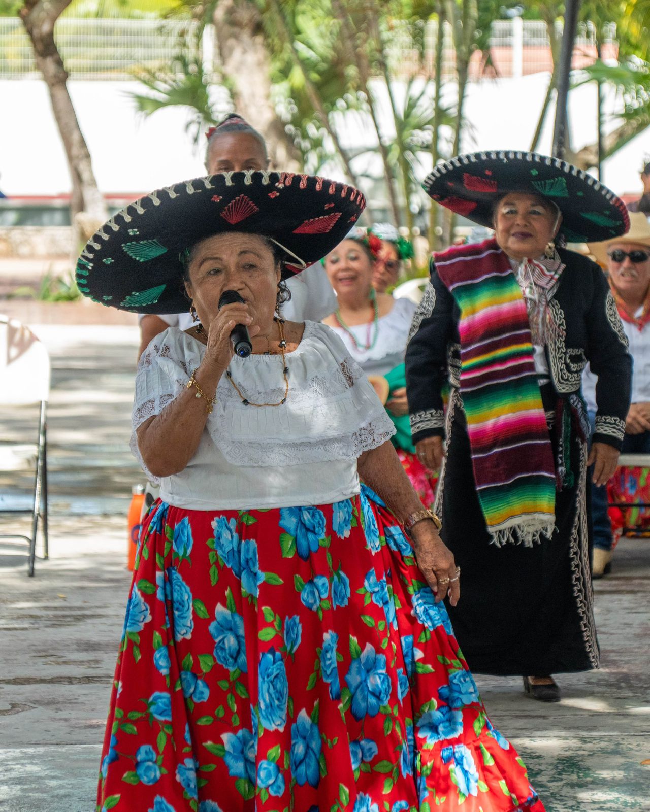 La jornada estuvo llena de color y talento con diversas presentaciones: el grupo de canto de la Estancia de Día, la pasarela de Lía Rodríguez Angulo y Luis Manuel Castillo, representantes cozumeleños en el Certamen Miss Abuelita y Mr. Abuelito 2025 en Chetumal, así como la participación del taller de folclor con la interpretación de Mezcalito de Lila Downs.