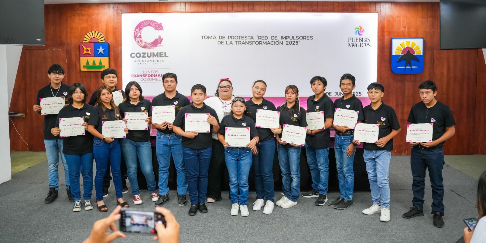 La ceremonia se realizó en el Salón Municipios de Quintana Roo, ubicado en la planta baja del Palacio Municipal, donde niñas, niños y adolescentes asumieron el compromiso de promover entre sus iguales el respeto, la empatía, el liderazgo y la responsabilidad social.