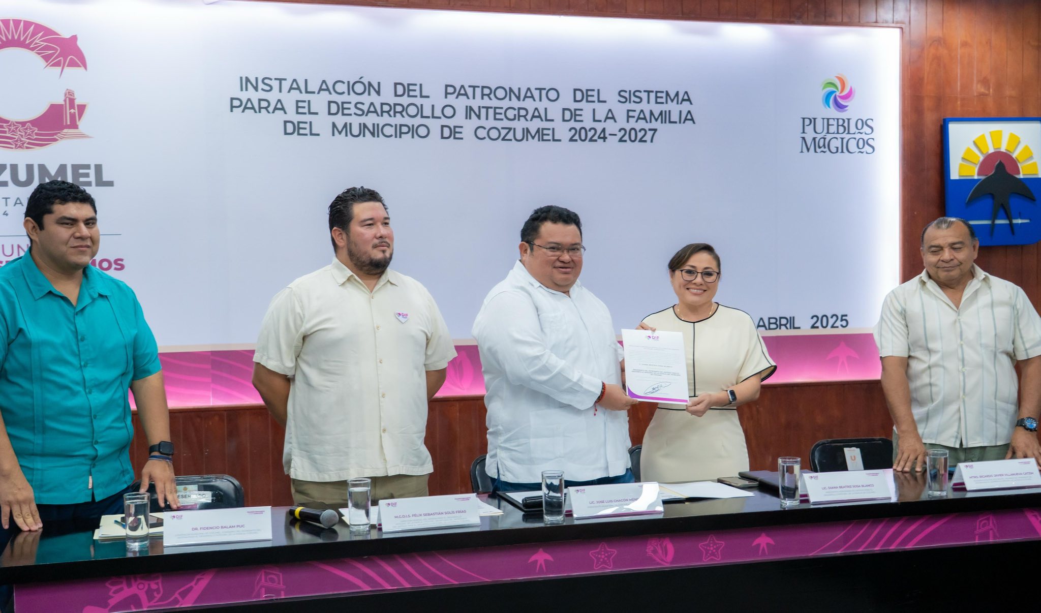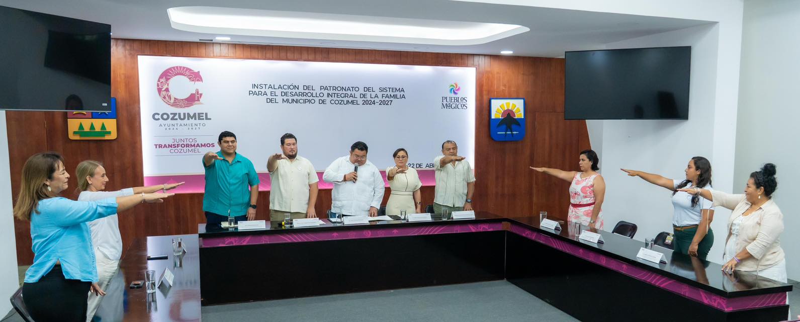Cozumel a 22 de abril de 2025.- El presidente municipal, José Luis Chacón Méndez, tomó protesta e instaló el Patronato del Sistema para el Desarrollo Integral de la Familia (DIF), el cual será presidido por Diana Beatriz Sosa Blanco, presidenta honoraria del Sistema DIF.